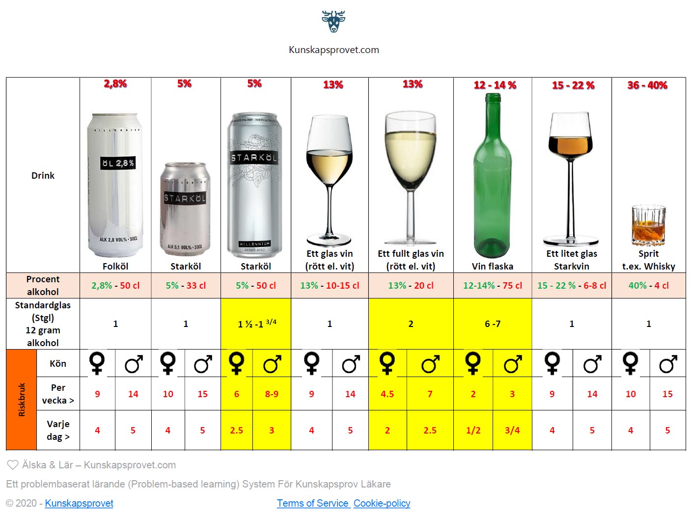 Denna mängd alkohol finns i ett glas 15 cl vin en flaska 33 cl starköl 5 eller 4 cl starksprit.